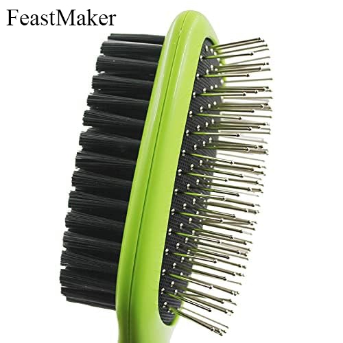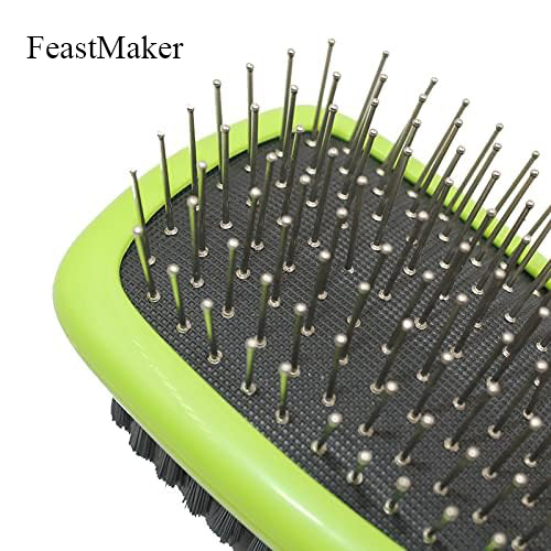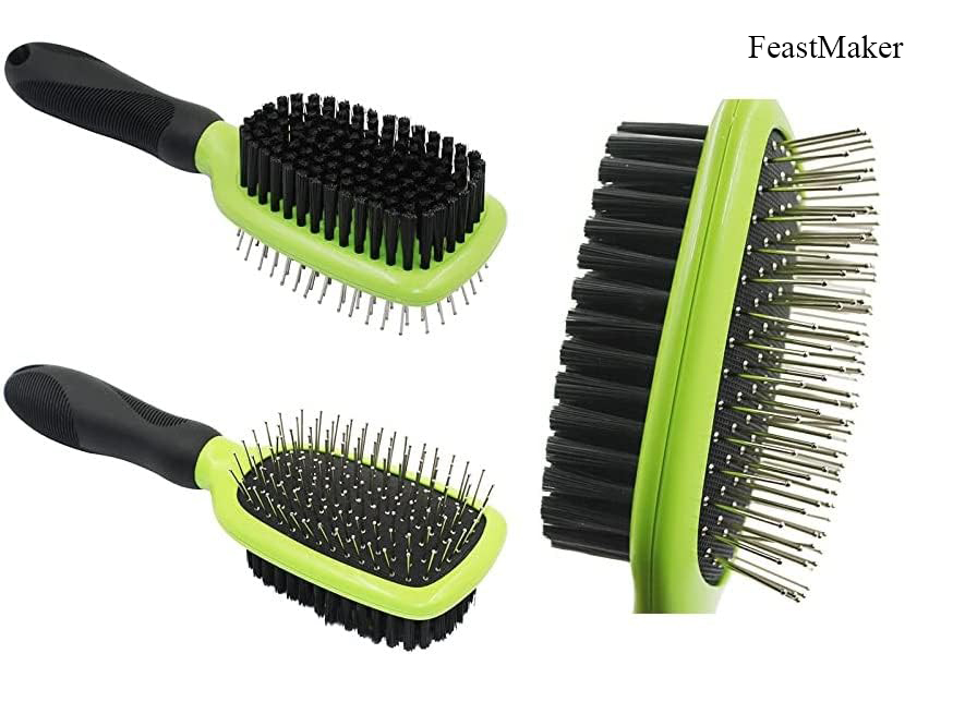 FeastMaker articles for animals Pets 2-in-1 Grooming Brush for Dogs & Cats – Pin Slicker and Bristle Brush Combo