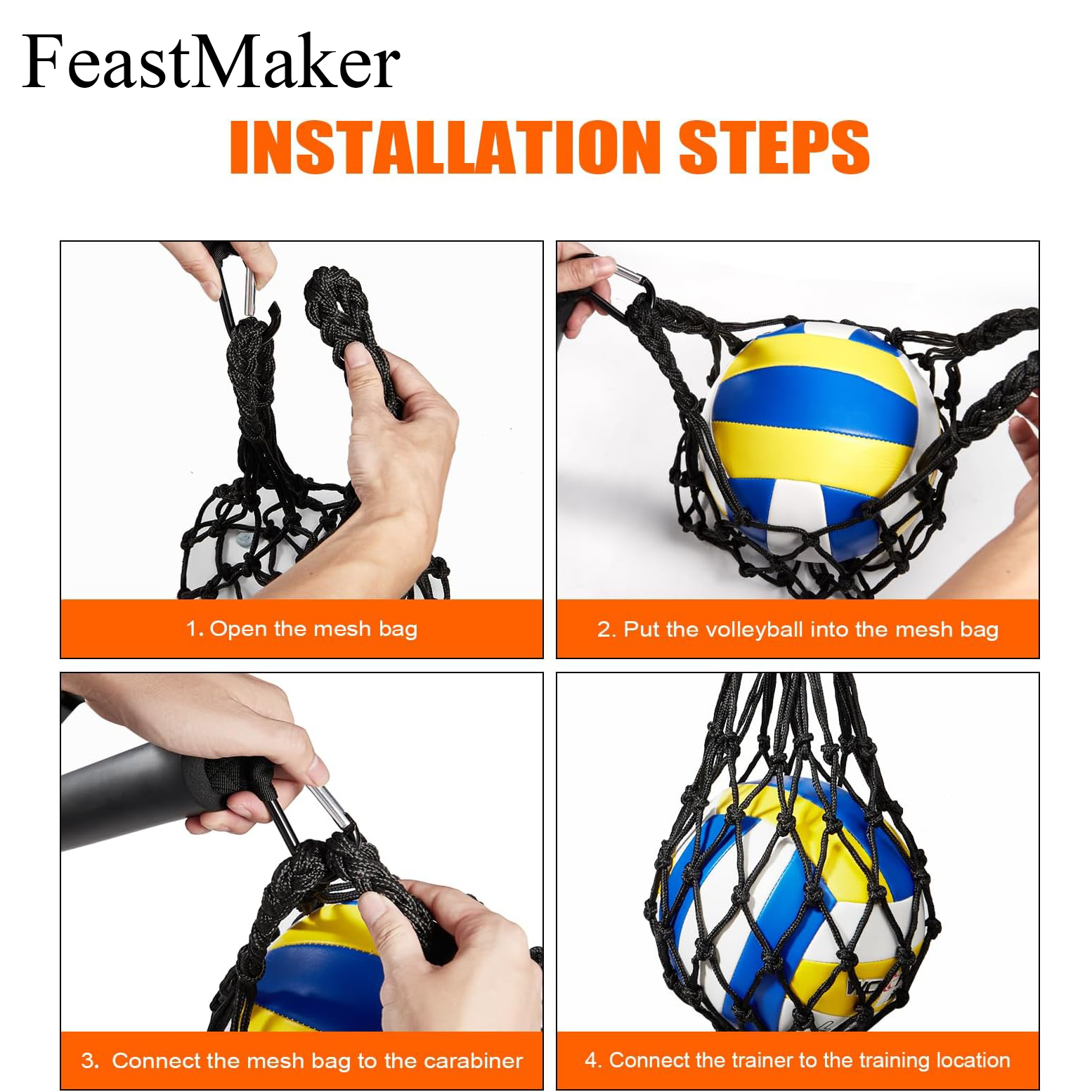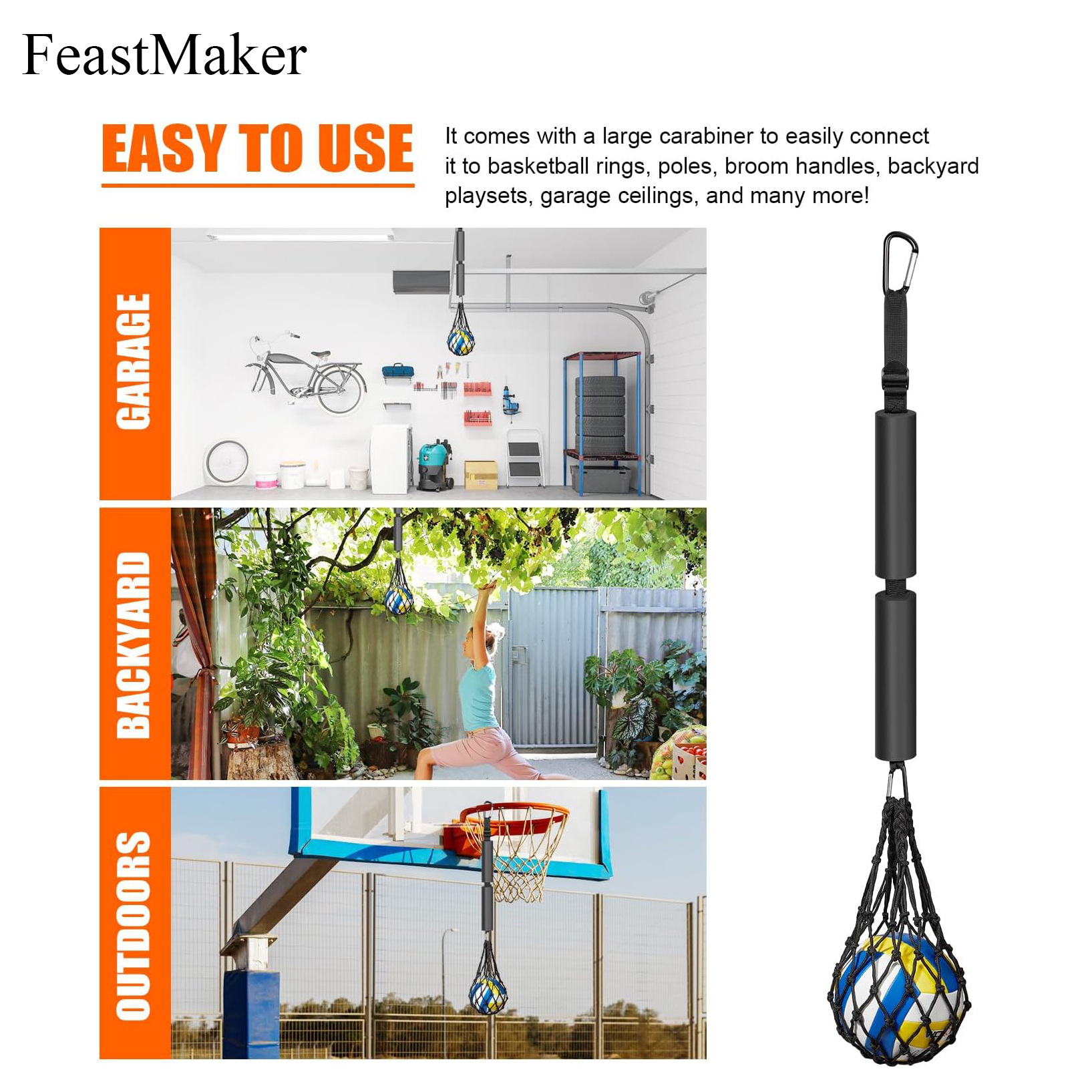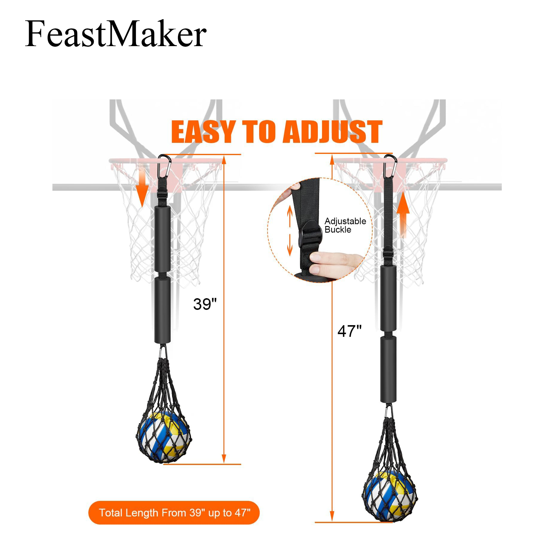 【Adjustable Design】This improved version features a D carabiner clip suitable for hanging anywhere, made of high-quality nylon, sponge and metal and elastic bands, and the mesh bag is designed to fit more types of balls. Even if hit hard, the volleyball will not come out. The adjustable elastic band adjusts to your desired length and height to accommodate any hitter’s height.
